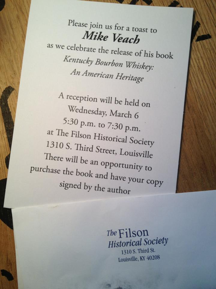 I attended the book release party in Louisville tonight for Mike Veach’s new book, Kentucky Bourbon Whiskey